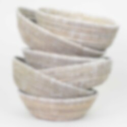 Beautifully shaped baskets, handmade by women in rural Senegal. Natural material is woven with thin colored plastic strips.