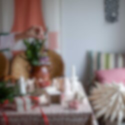 En fin liten hängande juldekoration av handgjort bomullspapper. Säljs i en fin prickig låda.