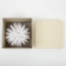 Vackert pappershantverk i en fin liten prickig låda. Varje låda innehåller 6 st 4 cm stora stjärnor. Papperstillverkningen skapar angelägen sysselsättning för framförallt kvinnor på landsbygden.