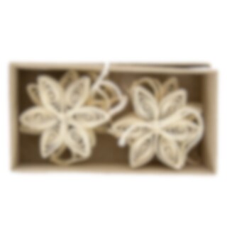 Små fina stjärnor av handgjort bomullspapper i en liten låda. Tekniken som används här är "quilling".