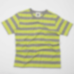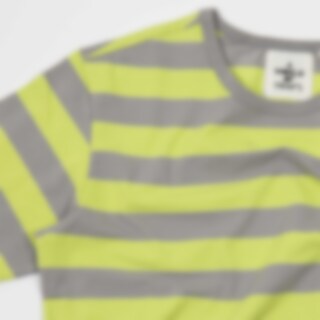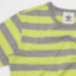 Randig kortärmad T-shirt i ekologisk bomull - Dam i färgen limegul och grå