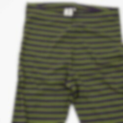 Randiga leggings i ekologisk bomull, i färgen olivgrönt och aubergine