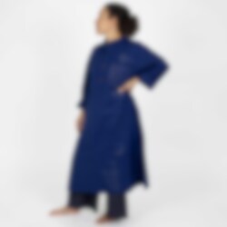 Denna vackra långskjorta med broderi är både stilren och bekväm. Med sin hellånga design och praktiska fickor är den perfekt för både avslappnade dagar och lite finare tillfällen. Den är tillverkad av en tunn mjuk bomullskvalitet. Broderiet är gjort för hand. Modellen är 161 cm.
