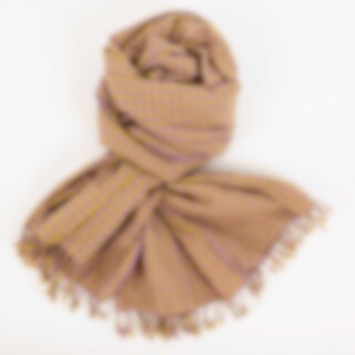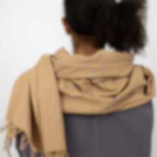 The small checkered shawl is handwoven from organic cotton. The quality is a dry cotton that becomes nice when you wash it, with a naturally wrinkled feel. The size is generous which means you can also use it as a smaller kanga.