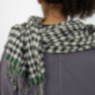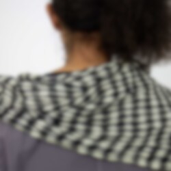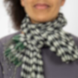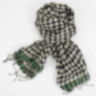 En stilren, rutmönstrad sjal i klassisk svart och vit. Tillverkad i mjuk bomull med ett grafiskt mönster som ger en tidlös men modern känsla.