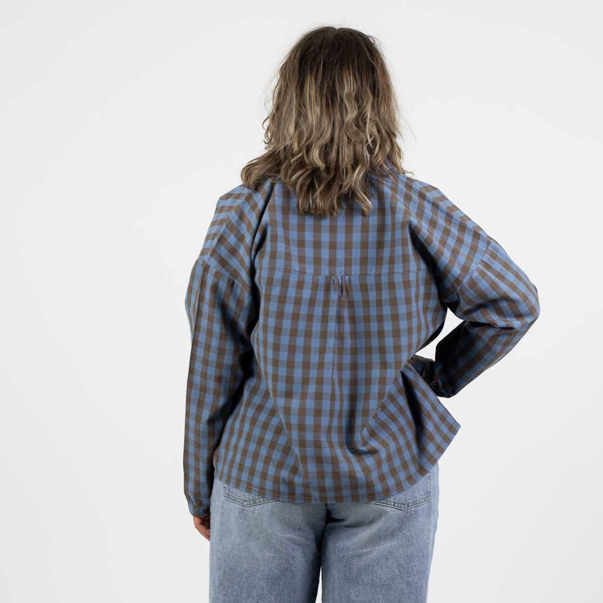 Gisela är en utanpåskjorta med en ficka på ena sidan. Modellen passar även som en tunnare jacka. Bomullskvaliteten är mjuk handvävd ekologisk bomull.