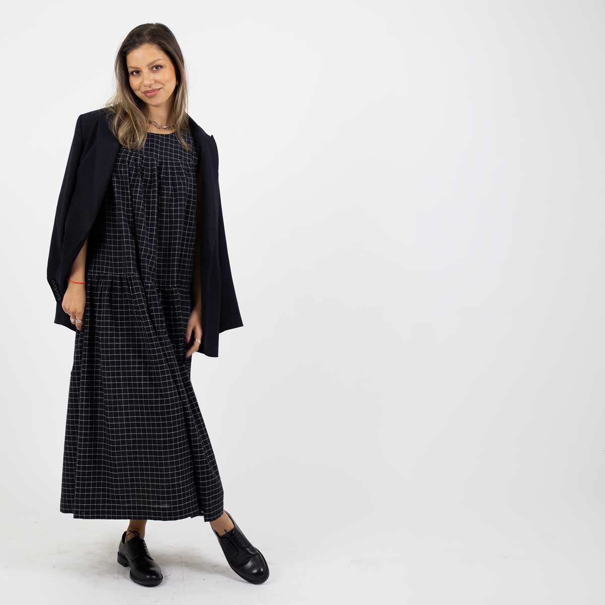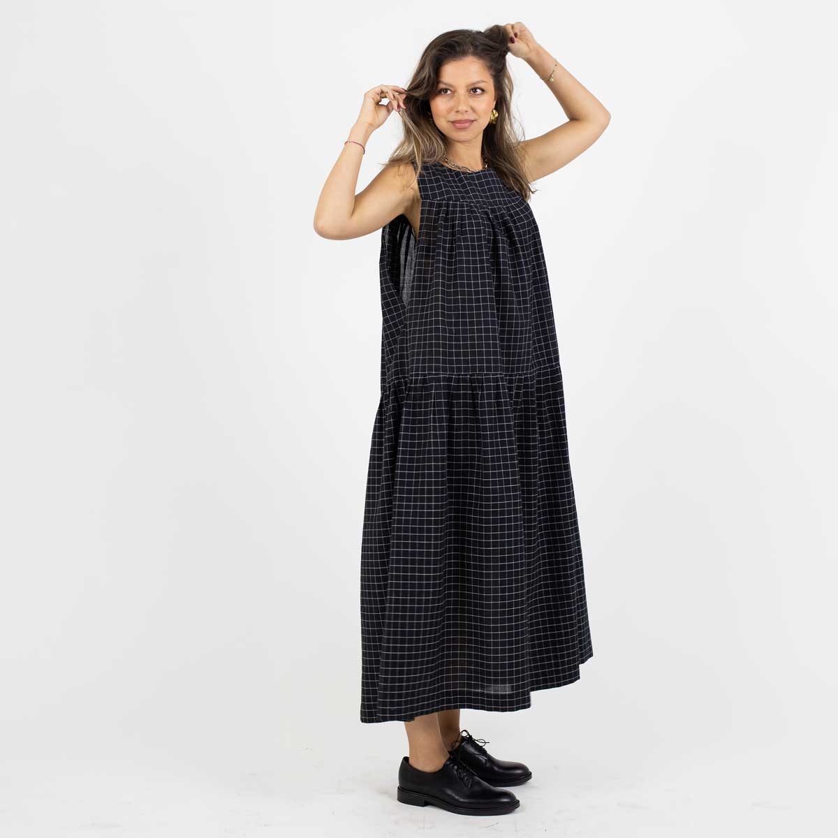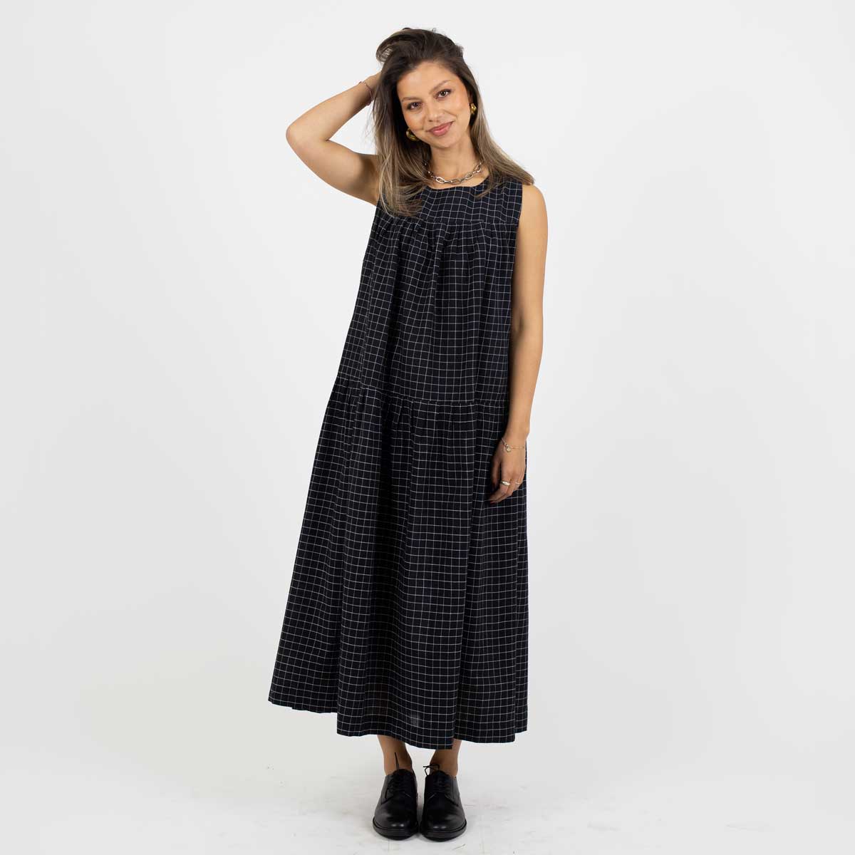 Artikelnummer1009669-BATillverkningslandBangladeshFärgSvart, vitMaterial100% bomullStorlekOne size. Längd: 124 cm. Bröstvidd: 73 cm. Kjolvidd: 113 cmTvättråd30 grader fintvätt