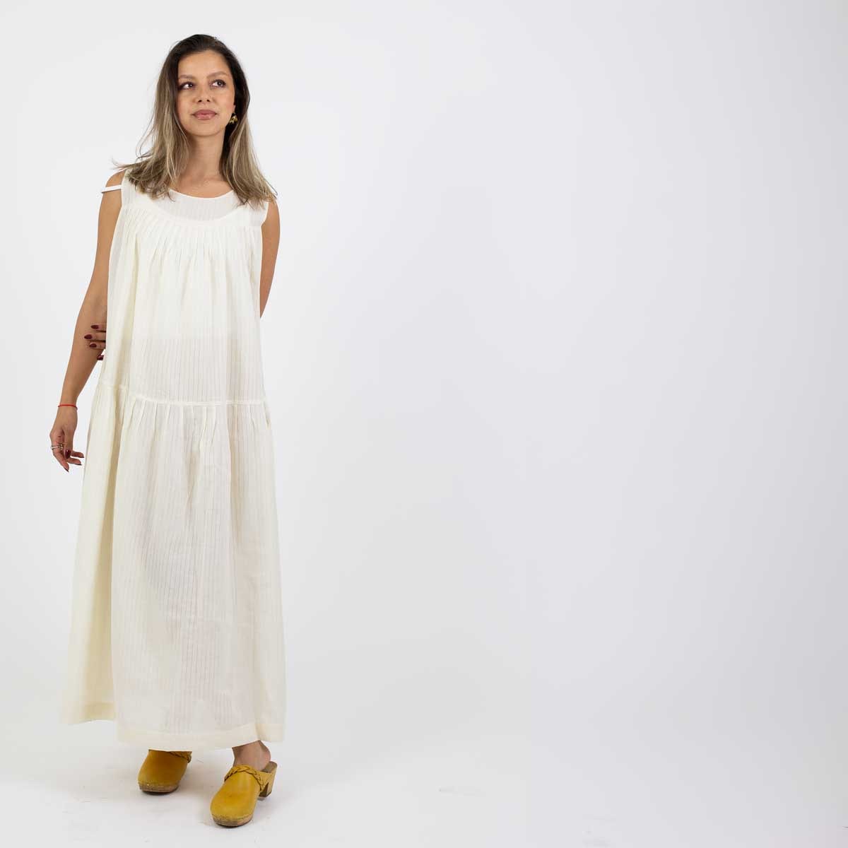 Artikelnummer1009670-BATillverkningslandBangladeshFärgVitMaterial100% bomullStorlekOne size. Längd: 124 cm. Bröstvidd: 73 cm. Kjolvidd:113 cm Tvättråd30 grader fintvätt
