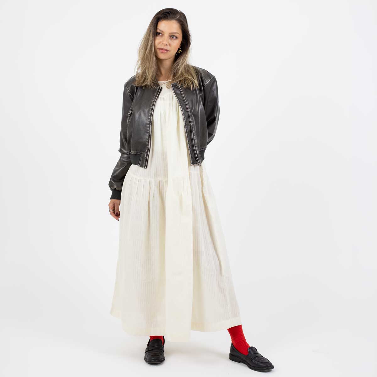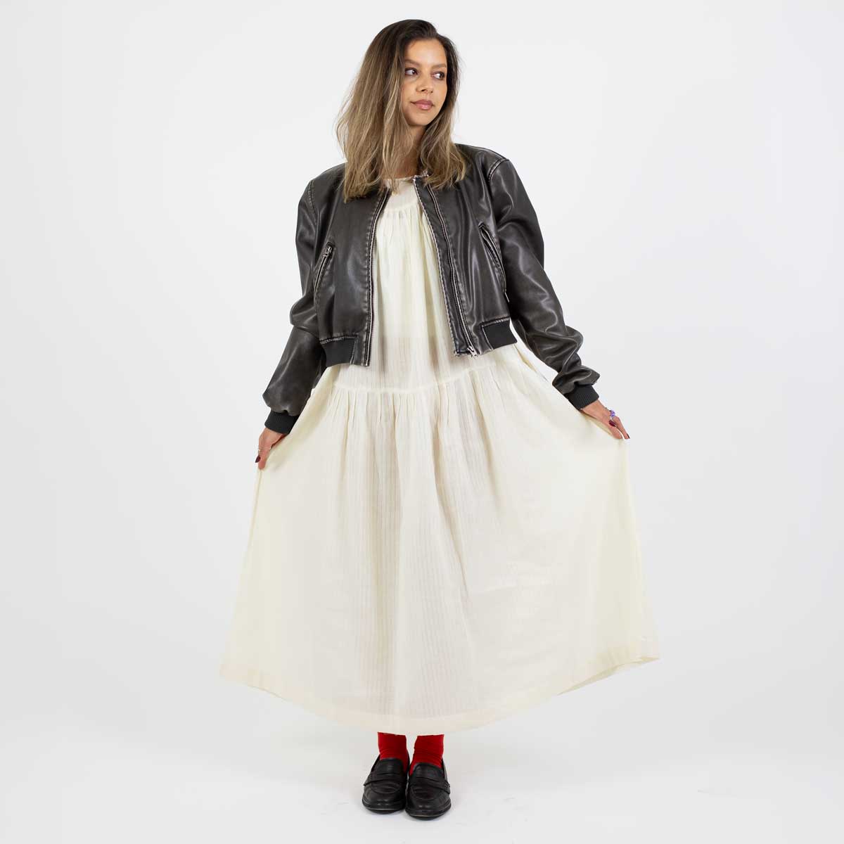Land: BangladeshMått: One size, ca L 124 cm, Bröstvidd 73 cm, kjolvidd 113 cm Material: BomullTvättråd: 30 grader fintvätt