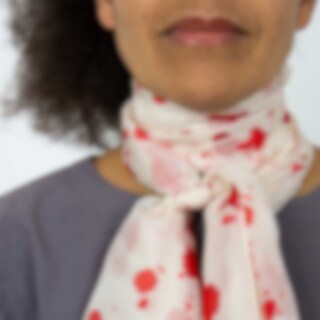 En tunn vacker sidenscarf som är mönstrad med vaxbatik. Färgningen görs för hand och gör att nyanserna varierar något.