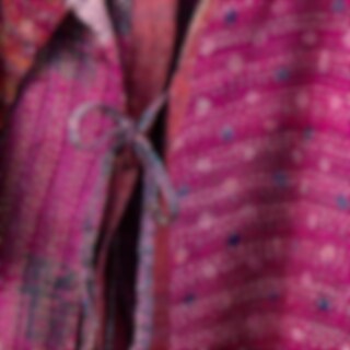 En färgglad kimono med fickor och skärp, gjord av sidentyg. Alla Kimono är olika men snarlik den på bilden.