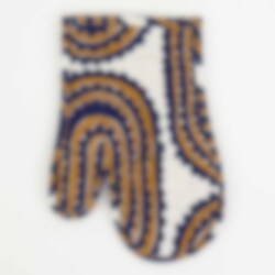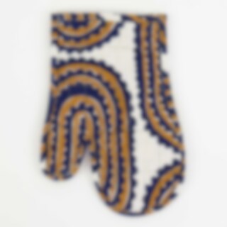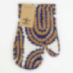 En praktisk grytvante tillverkad av handtryckt bomull och en isolerande polyesterfyllning, som skyddar handen vid matlagning.