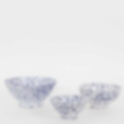 En vacker liten serveringsskål som blir fin till det dukade bordet. Skålen finns i tre storlekar. Keramiken från Marocko är vackert stänkmålad.
