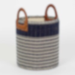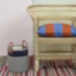 De välgjorda korgarna tillverkas av en hantverksgrupp i södra Indien, som mestadels består av kvinnor. Tyget är handvävt och handtagen är tillverkade av vegetabiliskt garvat läder.