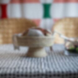 Ett handgjort fat på fot. Fint som uppläggningsfat för bröd eller annat. Men en korg på fot kan även fungera fint i t ex badrum för att förvara smycken.