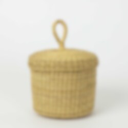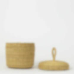 En liten välformad korg med lock. Små korgar är bra till förvaring av det mesta, ex. i badrummet eller i hallen.