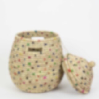 En fint formad korg med lock. Användbar som tvättkorg eller annan förvaring.