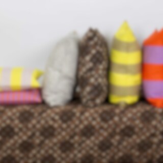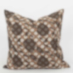 Ett handtryckt kuddfodral med fin mönstring på båda sidor, som fodrats med tunn bomull och fått en dekorativ maskinquiltning. Blixtlås på baksidan.