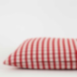 Ett rutigt kuddfodral i 100% ekologisk bomull. Båda sidorna har samma mönster och blixtlås i sidan.