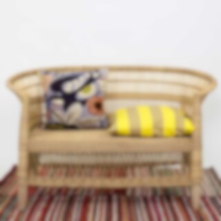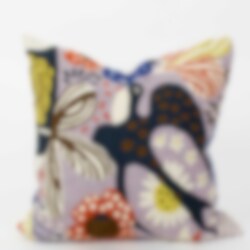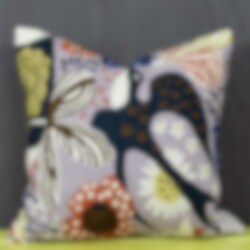 Den kvadratiska kudden från Indien har handbroderade kedjestygn som täcker hela ytan. Den tillverkas i Ladakhregionen i norra Indien. Den mönstrade framsidan är 100% Ull och baksidan är vit oblekt bomull.