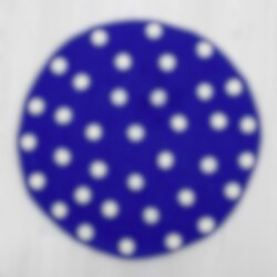 Rund sittdyna i ull, blå med vita prickar