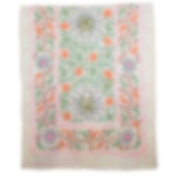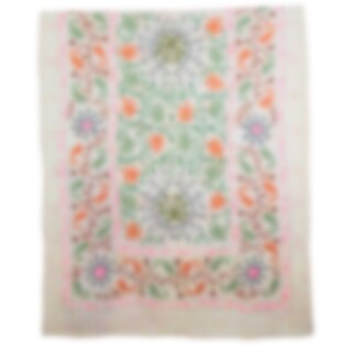 Ett stort handbroderat tyg med en storlek som passar till överkast för en enkelsäng. Tygstycket är är vändbart.