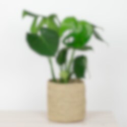 Den här cylinderformade korgen är virkad av raffia. Fin som en liten kruka, men också som förvaring för dina sybehör, dina mobilladdare, pennor etc.