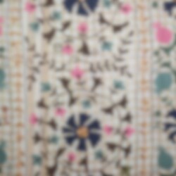 De stora bonaderna är handbroderade av kvinnor i Rajasthan. Kvinnorna är egentligen specialiserade på att brodera de traditionella skor, som är typiska för Rajasthan. Kvinnorna sitter i grupp och broderar på samma tygstycke. Färgkombinationerna är kvinnornas egna.
