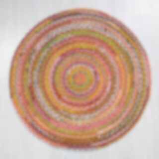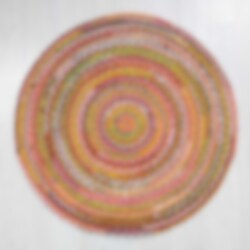 Mattan är tillverkad av tygremsor av bomull som flätats med jutefiber. De långa flätorna sys sedan samman på maskin tills önskad diameter uppnåtts.