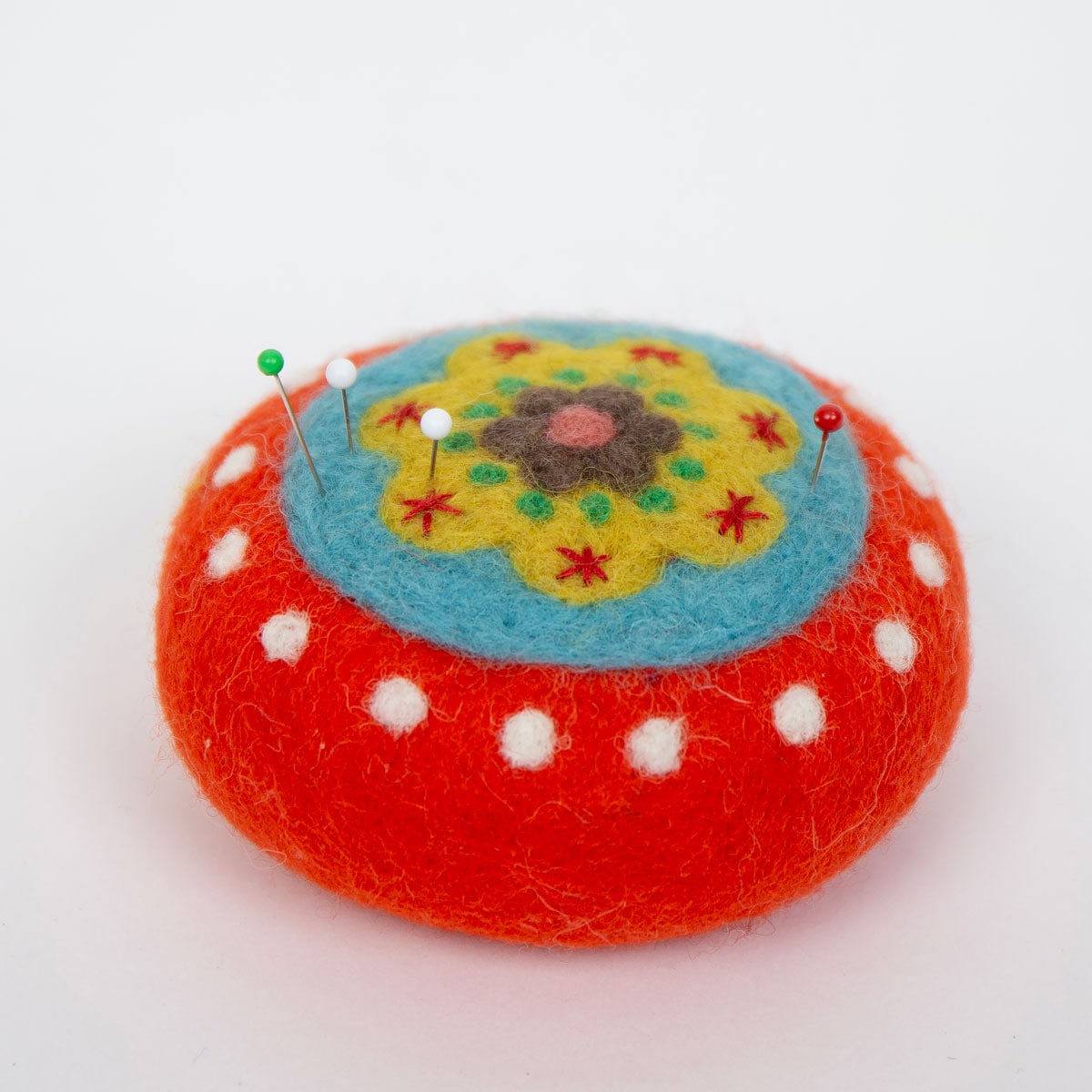 En dekorativ nåldyna av handfiltad ull. En fin present till den som gillar att sy?