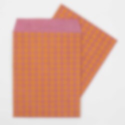 Ett handgjort pappersark, som är screentryckt på ena sidan. Det 50x72 cm stora pappret är vikt och ligger i ett kuvert med samma mönster.