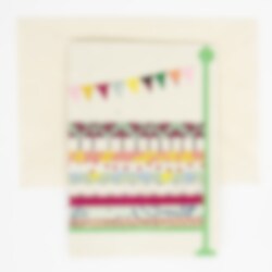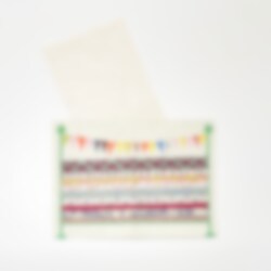 Dubbelvikt kort och kuvert av handgjort Loktapapper. Kortets insida är vitt.