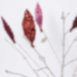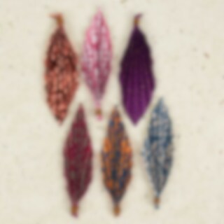 Miljövänliga fjädrar av handgjort papper. Fjädrarna har screentryckt mönster på ena sidan och är enfärgade på andra. Dra försiktigt ut "dragspels"-vecken och fäst i riset precis som en vanlig påskfjäder.