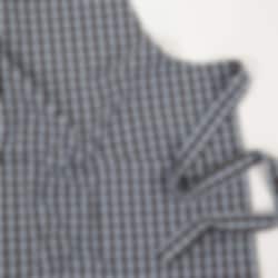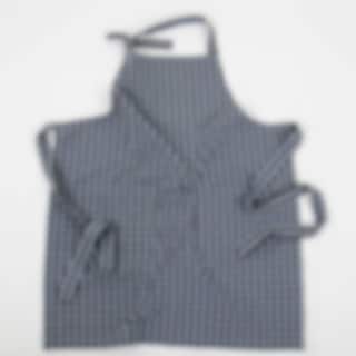 Förklädet, som är tillverkat av en stadig handvävd bomull, har två fickor fram och ett reglerbart band i nacken.