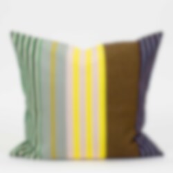 Ett kuddfodral i en stadig handvävd ripskvalitet. Båda sidor har samma mönster och blixtlås i sidan.