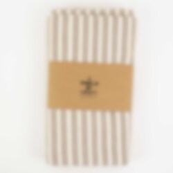 Randig duk i ekologisk bomull, 140x260 cm, med vita och bruna ränder