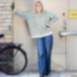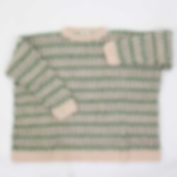 Vår stickade kollektion görs i samarbete med ett utbildningscenter i Nepal, som stödjer familjer med låga inkomster. Den handstickade tröjan gör det bl a möjligt för unga kvinnor att utbilda sig.