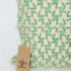 Mönstret är tryckt med ett handsnidat träblock som därefter handquiltats för att få en fin mjuk kvalitet. Att på detta sätt täcka en hel yta med stygn kallas för "Kantha". Det är en gammal teknik som ursprungligen användes för att på ett vackert sätt stärka och laga utslitna textilier.