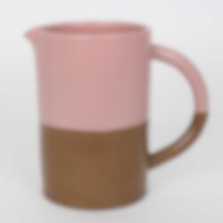 En handgjord karaff eller kanna av hållbart stengods. Ett dekorativt inslag på det dukade bordet.