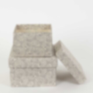 Fina små lådor tillverkade av handgjort papper med screentryckt prickmönster. Det handgjorda pappret görs av barken från en buske, som lokalt kallas "Lokta".