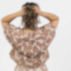 Vid topp i mjuk bomull. Rund halsringning och vida korta ärmar. Ryggen är fint rynkad för en avslappnad passform.