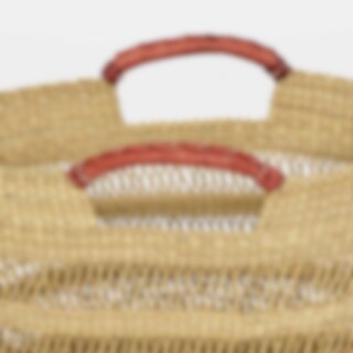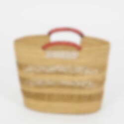 Denna handvävda väska kommer från Bolgatangaområdet i norra Ghana, där kvinnliga hantverkare flätar varje exemplar för hand. Hantverket ger dem en värdefull möjlighet till försörjning.