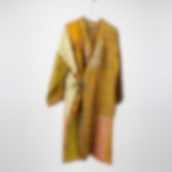 En färgglad kimono med fickor och skärp, gjord av sidentyg. Alla Kimono är olika men snarlik den på bilden.