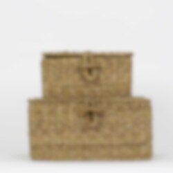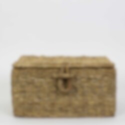 Det här är den största av de två storlekarna på bilden. En stadig förvaringskorg med lock, tillverkad av det hållbara materialet Hogla. Korgen tillverkas i ett Fair Trade-projekt som skapar arbetstillfällen för kvinnor på landsbygden i Bangladesh.