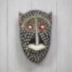 En hund eller apa. Dessa små cerimoniella svart-vita masker från Mali är svåra att motstå. En fin dekoration för vilket rum som helst!